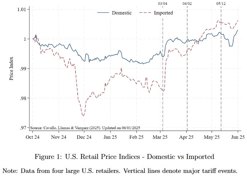 The price increases from tariffs can be seen in both economy-wide data and retail data.